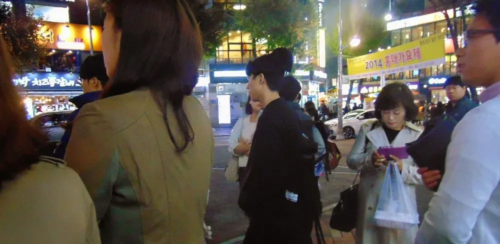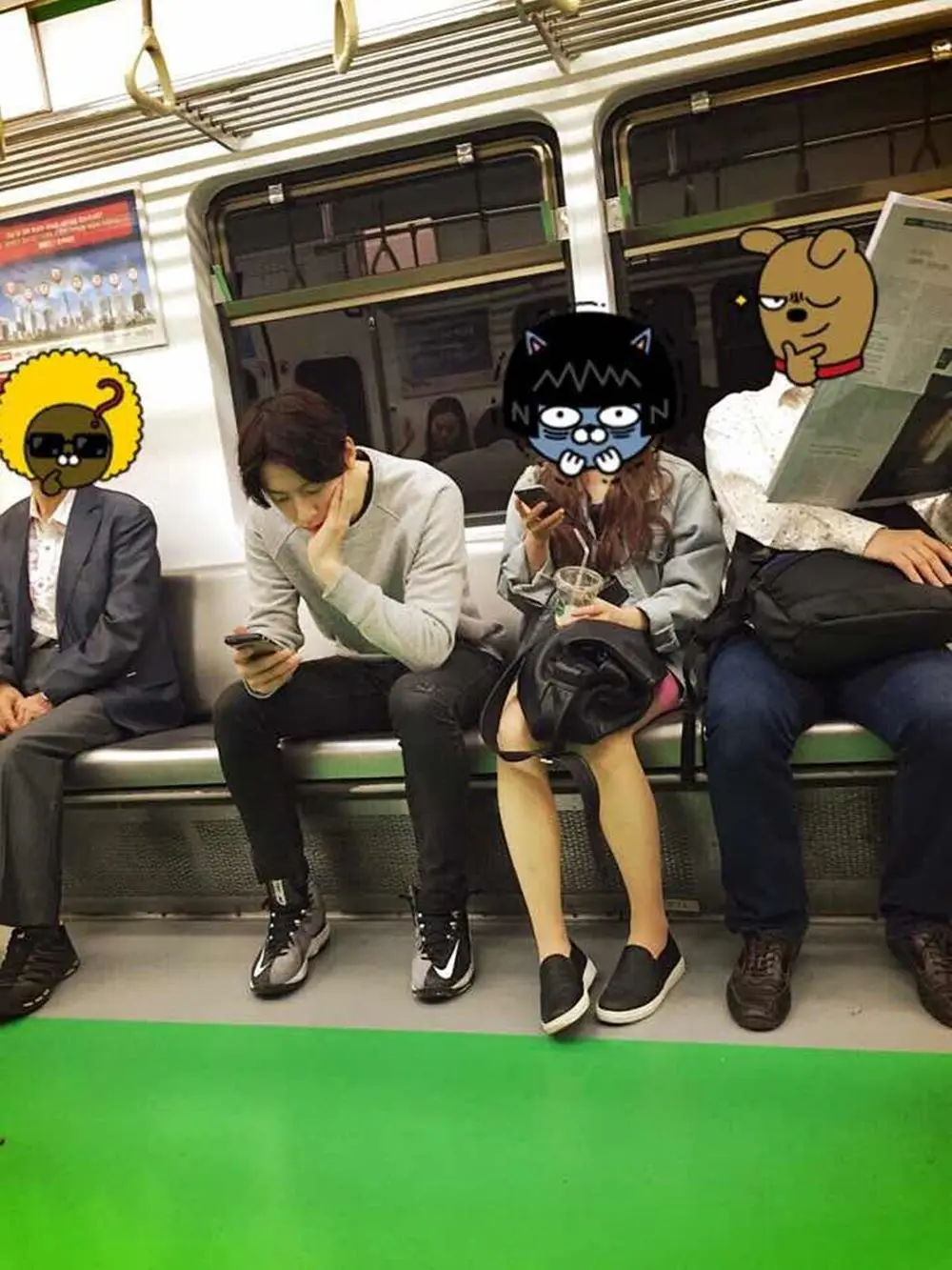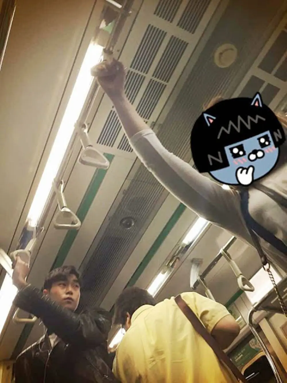 แล้วก็เป็นไปตามคาด พี่คนไทยเอากล้องมาถ่ายรูปน้องเกาหลีค้าาาา แถมพูดจาเทะโลมซึ่งขนาดเราที่นั่งฝั่งตรงข้ามยังได้ยินชัดทุกคำ น้องเกาหลีก็คงสังเกตและคิดแหละว่าโดนแอบถ่ายหรือเปล่าเลยชำเลืองมองเป็นระยะ พี่คนไทยพอโดนมองแทนที่จะเลิกถ่าย กลับวี้ดดกันหนักกว่าเดิมว่าโดนอ้ปป้ามอง เลยทั้งถ่ายรูปถ่ายคลิปไม่ยั้ง ทีนี้รถไฟที่วิ่งข้างบนเริ่มลอดลงใต้ดิน(ถ้าใครเคยขึ้นรถไฟฟ้าในเกาหลีช่วงที่ข้ามแม่น้ำฮันรถไฟฟ้าจะวิ่งข้างบนพอพ้นแล้วจะกลับมาวิ่งใต้ดินเหมือนเดิม) พอข้างนอกมืด กระจกมันเลยสะท้อนเห็นว่าโดนแอบถ่าย น้องเกาหลีคนใส่เพดดิ้งสีแดงเลยลุกไปคว้ามือถือจากคนไทยมาแล้วพูดเกาหลีใส่
