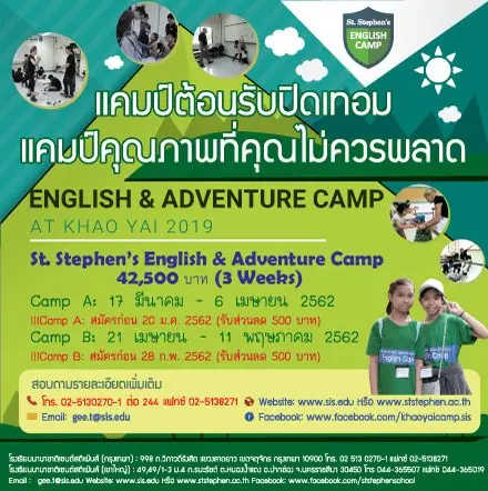 จึงเรียนมาเพื่อทราบ และทางโรงเรียนฯ หวังเป็นอย่างยิ่งว่าจะได้รับความไว้วางใจในการดูแลบุตรหลานของท่านในค่ายภาษาอังกฤษที่โรงเรียนนานาชาติเซนต์สตีเฟ่นส์ เขาใหญ่