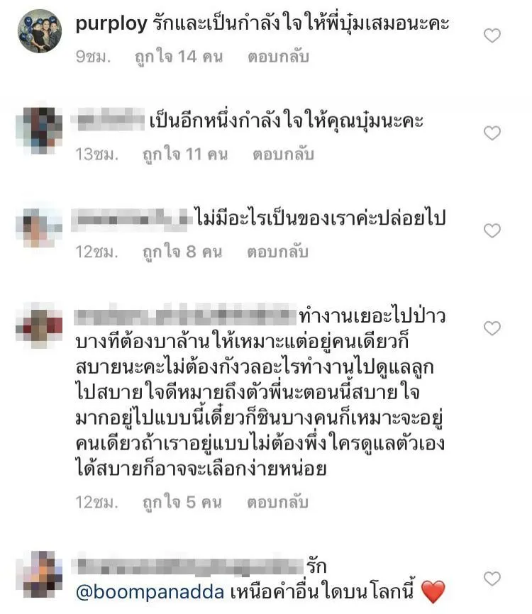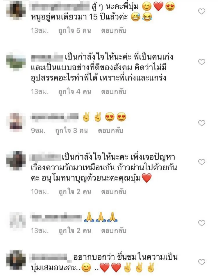 จนมีพื่อนพ้องพี่น้องคนในวงการบันเทิงเช่น กุ๊บกิ๊บ สุมณทิพย์ เป็กกี้ ศรีธัญญา อุ้ม ลักขณา พิ้งกี้ สาวิกา พลอย พลอยพรรณ รวมถึงอีกหลายๆ คนเข้ามาให้กำลังใจมากมาย