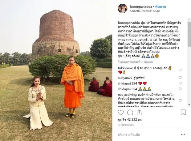 ล่าสุด สาวบุ๋ม ได้โพสต์รูปของตนเองขณะไปแสวงบุญกับพระอาจารย์ ว.วชิรเมธี พร้อมแคปชั่นว่า…