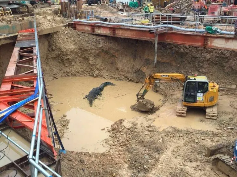 อันตรายรอบด้านจริงๆ ไหนจะท่อนเหล็ก ไหนจะจระเข้