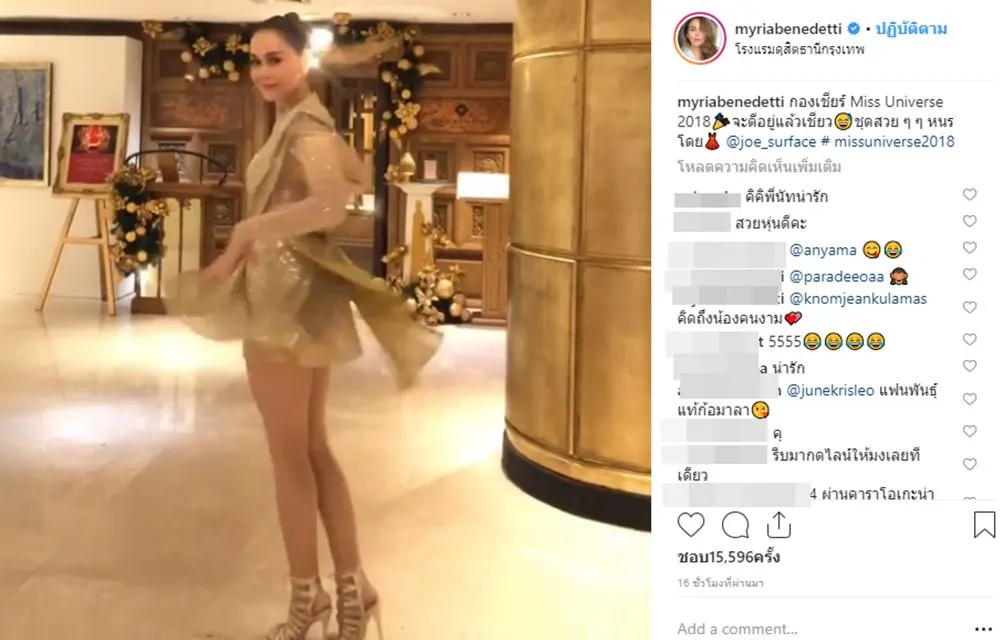 เอาใจคนชอบสิ่งสวยๆงามๆสำหรับการประกวด มิสยูนิเวิร์ส 2018 ซึ่งในปีนี้ประเทศไทยได้เป็นเจ้าภาพสาวนิ้ง โศภิดา ก็ทำตัวเป็นเจ้าบ้านที่ดี ต้อบรับเพื่อนอีกทั้งยังแนะนำวัฒนธรรมของไทย ต้องบอกเลยว่าสาวงามแต่ละประเทศทั้งความสวยความสามารถแทบจะกินกันไม่ลงโดยเฉพาะผู้เข้าประกวดจากประเทศฟิลิปปินส์ที่มีลีลาการเดินการหมุนตัวได้พริ้ว จนแฟนๆชาวไทยต่างเทใจให้เธอ ล่าสุด นัท มีเรีย ก็ขอตามกระเเสกับเขาบ้าง โชว์ลีลาการสุดพริ้วพร้อวกับพูดคำว่า ไทยเเลนด์ แหม!!สวยพอๆกับนางงามเลยนะ