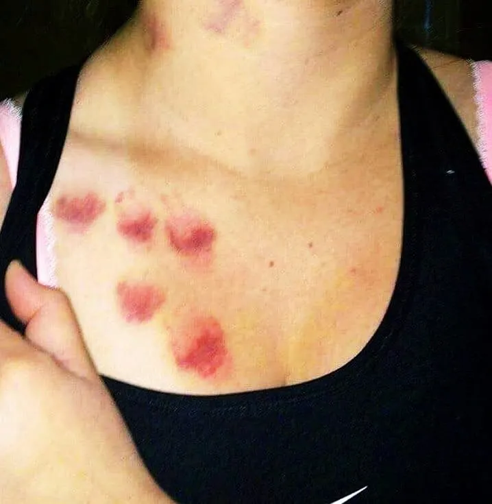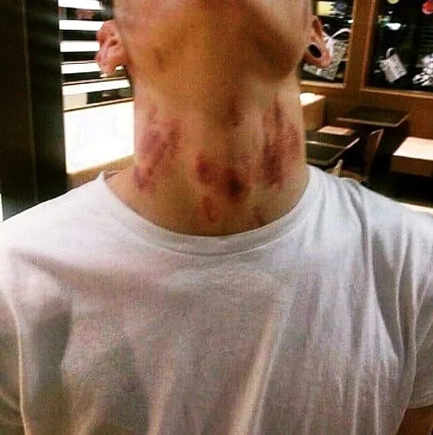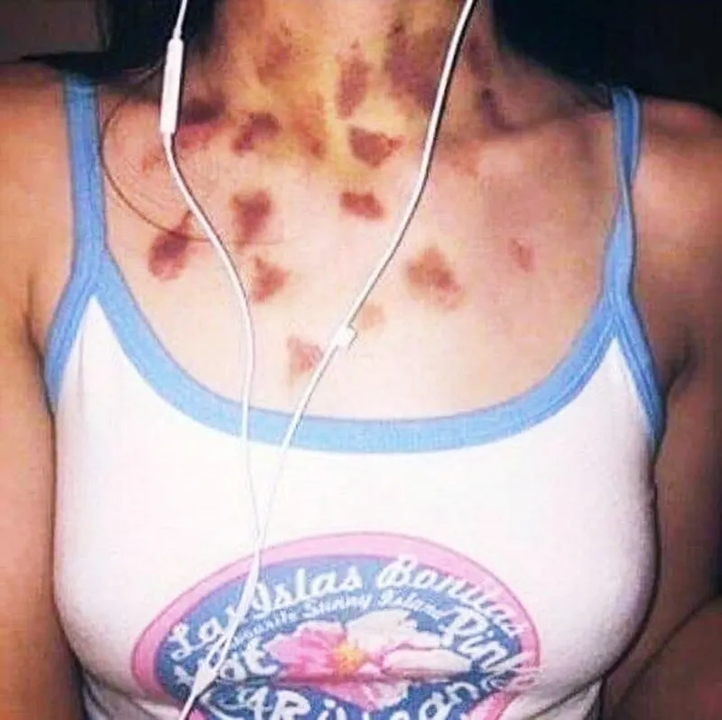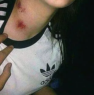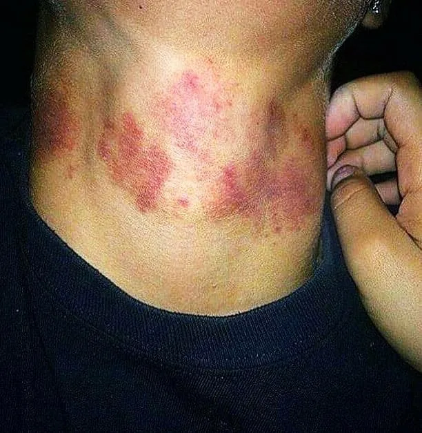 มันอาจเกิดจาก รอยดูด (love bites) เกิดจากการจูบดูดดึงผิวจนเส้นเลือดใกล้ผิวหน้าแตก ทำให้เกิดรอยแดงช้ำปรากฏขึ้น ในบางกรณีนำมาซึ่งอันตรายได้ โดยเหตุที่เคยเกิดขึ้นแล้ว อาทิ กรณีหญิงชาวนิวซีแลนด์วัย 44 ปี ร่างกายกลายเป็นอัมพาตไปบางส่วน เพราะรอยจูบเกิดขึ้นตรงเส้นเลือดที่นำเลือดไปเลี้ยงหัวใจของเธอ อย่างไรก็ตาม ในปัจจุบันเจ้าตัวสามารถฟื้นฟูร่างกายกลับมาได้แล้ว