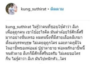 “ไม่รู้ว่าคนที่ชอบใช้คำว่า ลิเก เพื่อดูถูกคน เขาใช้อะไรคิด มันต่ำต้อยไร้ศักดิ์ศรีมากอย่างนั้นเหรอ ผมคนนึงที่มีสายเลือดลิเกมาตั้งแต่บรรพบุรุษ ไม่เคยดูถูกใคร และภาคภูมิใจในอาชีพของพ่อแม่ ปู่ย่าตายาย พ่อผมรักอาชีพนี้จนตัวตาย”