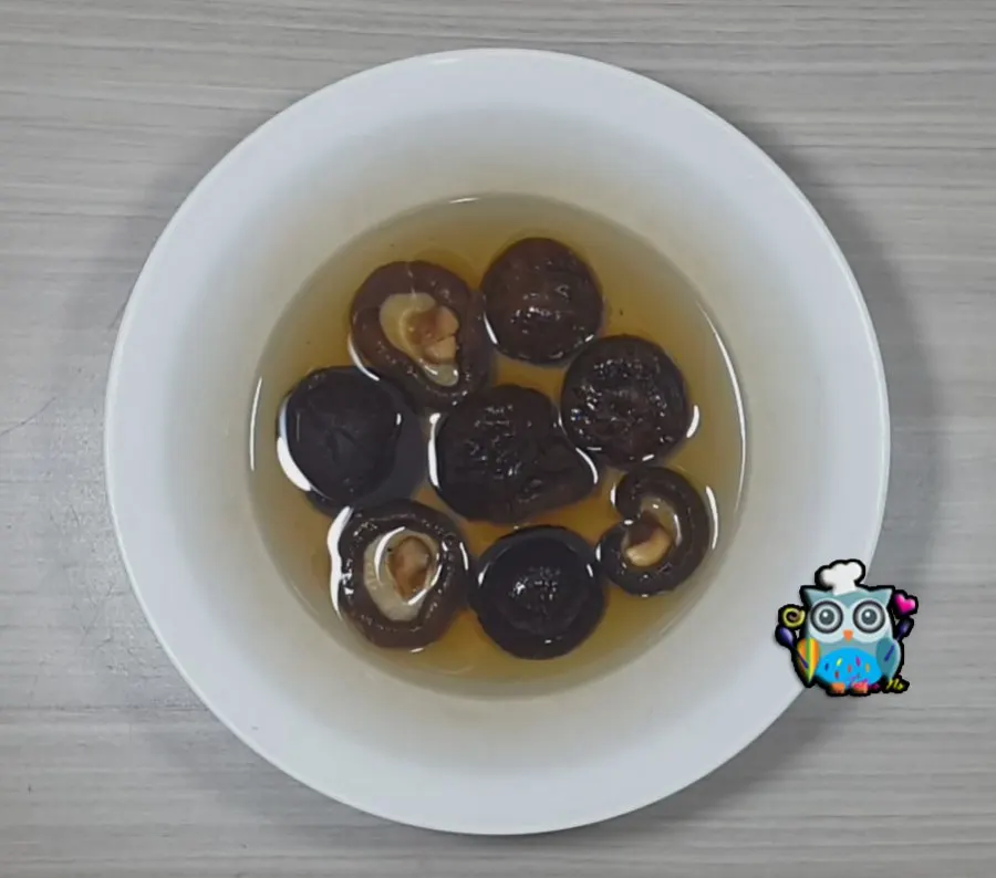 2.ล้างเห็ดหอมผ่านน้ำ จากนั่นแช่เห็ดหอมกับน้ำให้นิ่ม