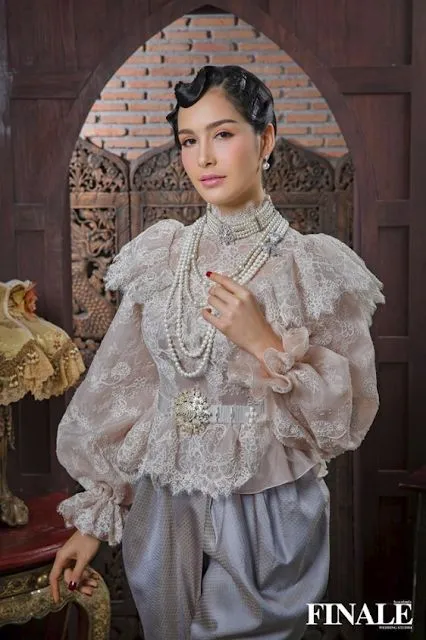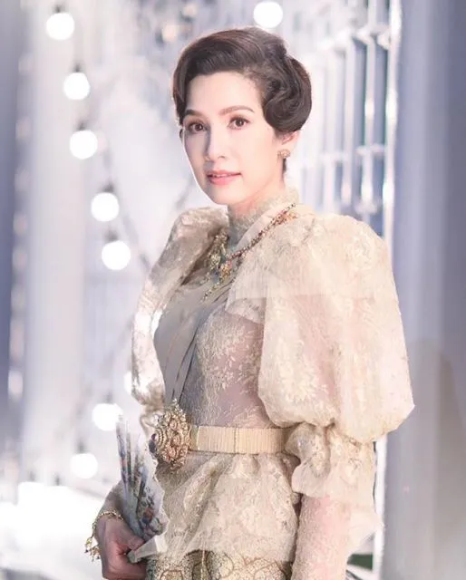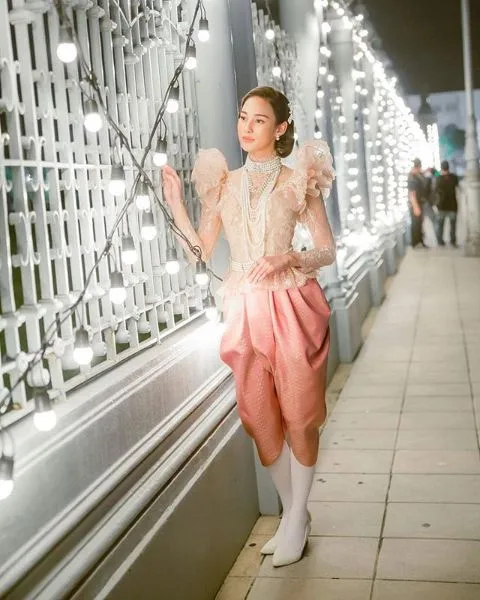 อีกหนึ่งนางเอกสาวจากช่องหมอชิต “นาว ทิสานาฏ” หวานใจของพระเอกรุ่นพี่ “นิว วงศกร” ที่ตอนนี้ความรักของทั้งคู่กำลังแฮปปี้สุดๆ ด้วยความที่หน้าตาของสาวนาวนั่นดูไทยมากๆ พอได้ใส่ชุดไทยประยุกต์เข้าไปอีก เลยทำให้ออกมาสวยงามอย่างไทยแท้เลย