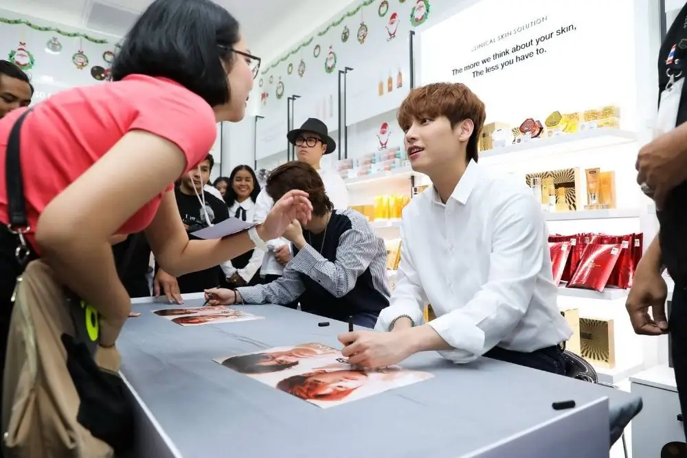 แฟนคลับกรี๊ดหนัก!!! กระทบไหล่สองหนุ่ม!!! อินซอง&ฮวียัง ใกล้ชิดพร้อมรับลายเซ็นที่ It’S SKIN สาขา Centerpoiint at Siam Square จัดกิจกรรมเอาใจแฟนคลับอย่างต่อเนื่อง สำหรับเครื่องสำอางภายใต้แบรนด์ It'S SKIN ที่คราวนี้จัดกิจกรรมชวนมาลุ้นรับสิทธิ์เข้าร่วมงาน Fan Sign กับ อินซอง ( #Inseong ) และ ฮวียัง ( #Hwiyoung) สมาชิกวง SF9 ศิลปินเกาหลีวงบอยกรุ๊ปจากค่าย FNC Entertainment งานนี้ทั้งสองหนุ่มดูเฟรนด์ลี่มากๆ แถมยังแจกรอยยิ้ม และลายเซ็นให้กับเหล่าสาวกตัวจริง เสียงจริง ที่มารอกันตั้งแต่เช้า พอสองหนุ่มปรากฏตัวก็เรียกเสียงกรี๊ดดด....ลั่น!!! It'S SKIN Shop บริเวณชั้น 3 Centerpoint at Siam Square พร้อมเสียงเรียกชื่อทั้งสองหนุ่มดังกึกก้องไปทั่ว ทำเอาสองหนุ่มถึงกับยิ้มแก้มปริ และทักทายแฟนคลับชาวไทยด้วยภาษาไทย “สวัสดีครับ....” พร้อมพูดคุยอย่างเป็นกันเอง ซึ่งในช่วงท้ายของงาน คุณศศิบุษย์ มานะนาวิกผล ผู้บริหาร บริษัท โคเรีย กู๊ดส์ จำกัด ในนามผลิตภัณฑ์ It’S SKIN ได้มอบช่อดอกไม้ให้กับสองหนุ่มเพื่อเป็นการขอบคุณ และถ่ายรูปเป็นที่ระลึกกับทีมงาน It’S SKIN ด้วยจ้า.... #ItsSKINTHAILAND #SF9 #FNC #ACHIACTIVATION