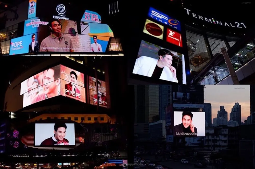 แฟนคลับกลุ่ม ส้มส้ม และ แฟนคลับชาวจีน ก็ร่วมกันจัดเซอร์ไพร์สใหญ่ จัดทำคลิปรวมภาพความประทับใจ ความน่ารัก หล่อทะลุจอ และ คลิปอวยพรวันเกิด มาขึ้นจอ LED ใหญ่ยักษ์ ในจุดสำคัญๆ ทั่วกรุงเทพ ไม่ว่าจะเป็น อนุสาวรีย์ชัยสมรภูมิ , แยกมาบุญครอง ,แยกอโศก - เพชร , Terminal21 ,จอหน้าห้าง EmQuartier , Emporium ฉายตลอดทั้งวัน ทั้งคืน ยาวถึงต้นปีหน้ากันเลยทีเดียว