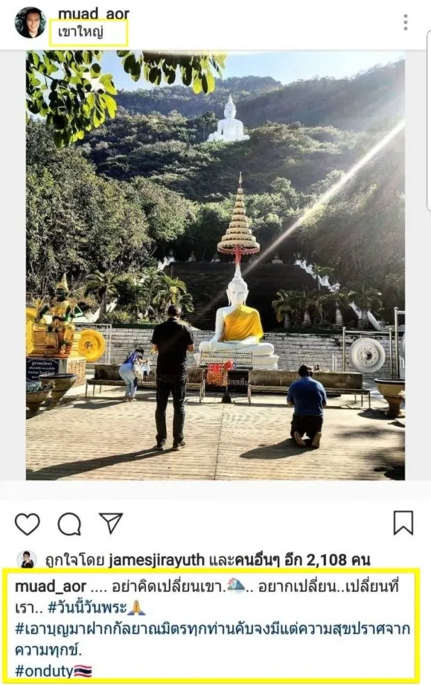 อย่างโพสต์ล่าสุดของ หมวดอ๋อ ได้เผยภาพขณะที่เจ้าตัวไหว้พระขอพรอยู่ที่เขาใหญ่พร้อมแคปชั่นชวนคิดว่า “อย่าคิดเปลี่ยนเขา อยากเปลี่ยน เปลี่ยนที่เรา” งานนี้ก็มีหลายๆคนโยงกันว่าต้องการจะสื่ออะไรถึง แอฟ หรือเปล่า หรือเป็นแค่เพียงเพียงแนวคิดดี ๆไว้ให้กำลังใจตนเองเท่านั้น