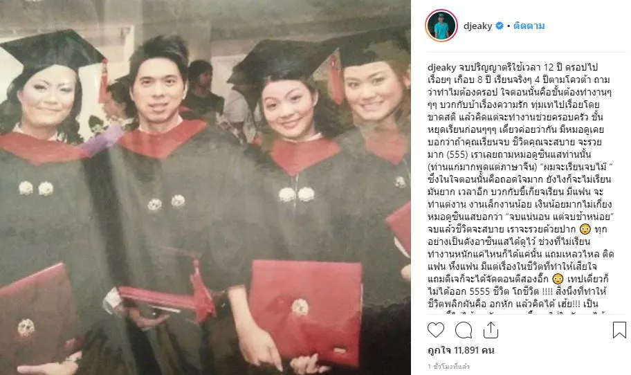 "ดีเจเอกกี้" โพสต์อดีตไม่มีใครรู้ เรียน ป.ตรี 12 ปี กว่าจะคิดได้ รับปริญญาตรีใบแรกตอนอายุ 30