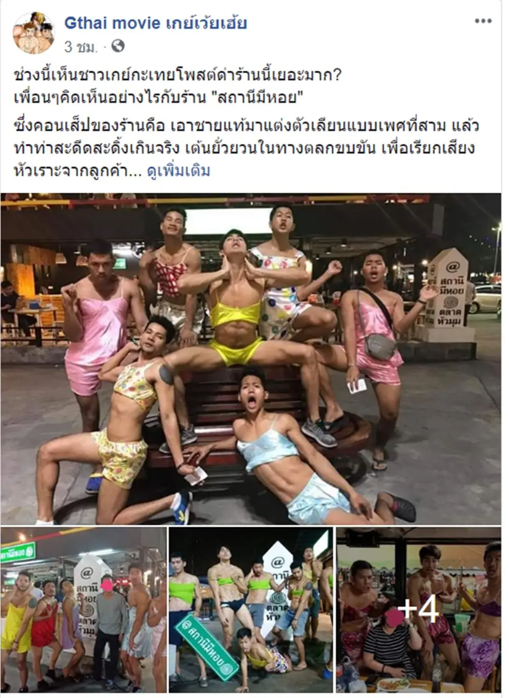โดยจากเพจ "Gthai movie เกย์เว้ยเฮ้ย" ได้ระบุข้อความไว้ว่า ช่วงนี้เห็นชาวเกย์กะเทยโพสต์ด่าร้านนี้เยอะมาก? เพื่อนๆคิดเห็นอย่างไรกับร้าน "สถานีมีหอย"ซึ่งคอนเส็ปของร้านคือ เอาชายแท้มาแต่งตัวเลียนแบบเพศที่สาม แล้วทำท่าสะดีดสะดิ้งเกินจริง เต้นยั่วยวนในทางตลกขบขัน เพื่อเรียกเสียงหัวเราะจากลูกค้าโดยส่วนตัว แอดมินไม่โอเคกับร้านนี้ แม้ทางร้านจะอ้างว่าทำเพื่อเสียงหัวเราะ แต่ดูแล้วก็ไม่รู้ว่าจะขำตรงไหน การแสดงก็ไม่มีอะไร แค่ทำท่ายั่วยวน ส่งเสียงวี้ดว้าย ให้ดูน่าเกลียดโอเวอร์เกินจริงแค่นั้น (แถมคนแสดงก็เป็นชายแท้)คนละอย่างกับโชว์กะเทยตลกในทิฟฟานี่คาบาเร่โชว์ อันนั้น กะเทยจริงๆแสดง มีการครีเอทมุขตลก มีบท มีลูกเล่นหยอกเย้าผู้ชมอย่างมีศิลปะ มีการโชว์ลิปซิ้ง มีร้องเพลง แม้แต่เครื่องแต่งกายก็มีการครีเอท ผ่านการออกแบบอย่างดีแต่ร้านสถานีมีหอย ไม่มีอะไรเลย นอกจากร้องกรี้ดกรี้ด เต้นยั่วยวนแบบน่าเกลียดเฉยๆ มันตลกตรงไหนสมมุติมีคนต่างชาติ เปิดร้านชื่อ "สถานีคนไทย" แล้วเอาฝรั่งมาแต่งชุดไทยแบบมั่วๆ แล้วเต้นท่าตลกๆแรดๆเฉยๆ เพื่อเรียกเสียงหัวเราะจากลูกค้า เราคนไทยจะรู้สึกยังไงยอมรับนะ ว่าเมื่อก่อน เพจเราเคยโพสต์ถึงร้านนี้แบบขำๆ เพราะสมัยก่อนร้านนี้แค่ถอดเสื้อโชว์กล้ามเฉยๆ อย่างมากแค่เอาชุดผู้หญิงมาใส่ถ่ายรูปเล่นเป็นบางวัน แต่พอปัจจุบัน เปลี่ยนมาเน้นแสดงโชว์ล้อเลียนกะเทยอย่างเต็มรูปแบบ แอดมินว่า มันไม่ใช่แล้ว มันล้ำเส้นเกินไป