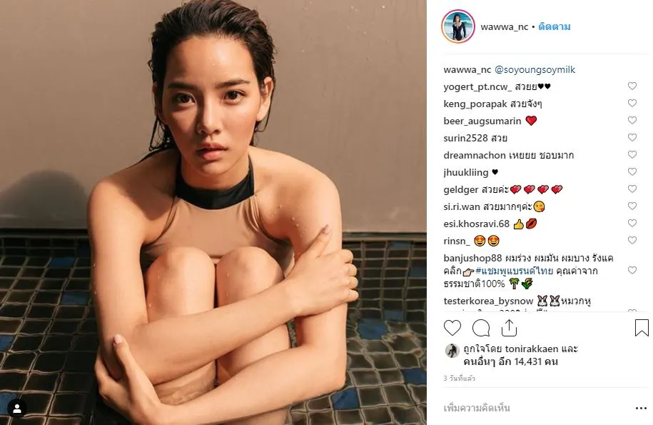 “วาววา ณิชารีย์” โพสต์ภาพชุดว่ายน้ำ ชาวเน็ตแห่ซูม