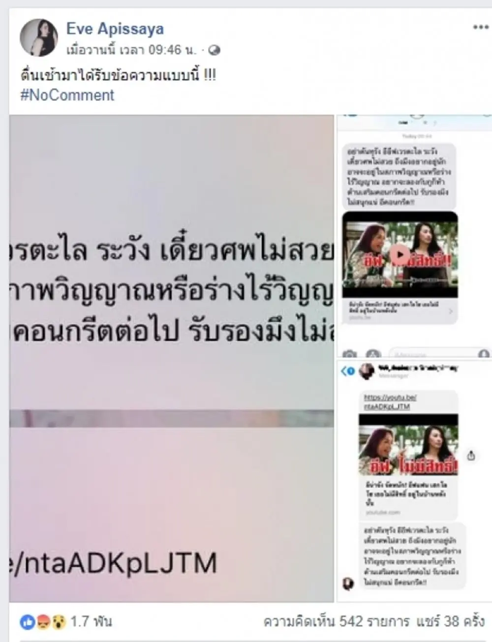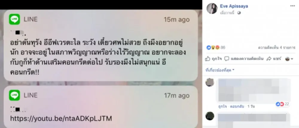 เปิดแชทลับ!!! "อีฟ แม็กซิ" แฟน "เสก โลโซ" โดนส่งข้อความข่มขู่ทางโทรศัพท์ ระวังศพไม่สวย