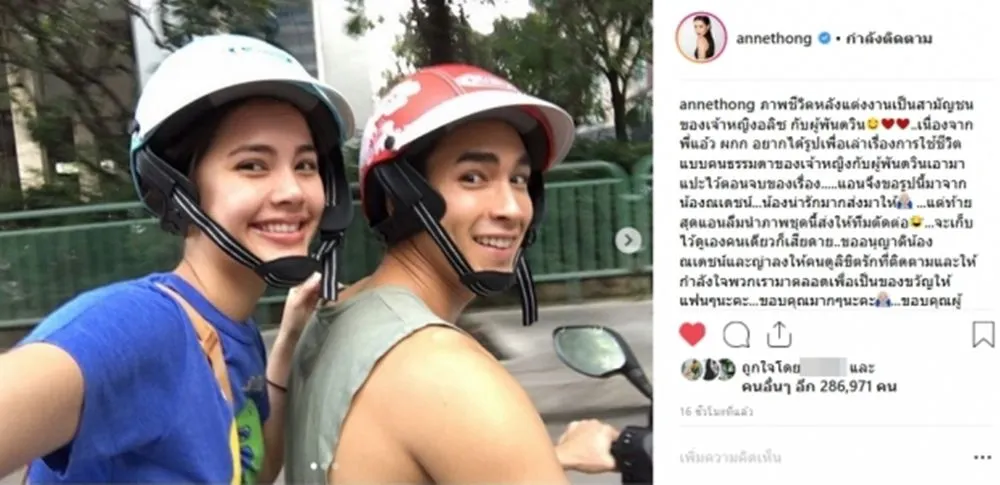 ทำเอาหลายคนแอบตกใจ เมื่อได้เห็นภาพหวานของ ณเดชน์ คูกิมิยะ กับ ญาญ่า อุรัสยา ที่ผู้จัดละครคนเก่ง แอน ทองประสม ได้โพสต์เกริ่นนำว่า "ภาพชีวิตหลังแต่งงาน" แต่ก็หายตกใจเมื่ออ่านต่อแล้วกลายเป็นเรื่องราวของ เจ้าหญิงอลิซ กับผู้พันดวิน จากละคร ลิขิตรัก โดยแอนบอกไว้ว่า"ภาพชีวิตหลังแต่งงานเป็นสามัญชน ของเจ้าหญิงอลิซ กับผู้พันดวิน..เนื่องจากพี่แอ้ว ผกก อยากได้รูปเพื่อเล่าเรื่องการใช้ชีวิตแบบคนธรรมดาของเจ้าหญิงกับผู้พันดวินเอามาแปะไว้ตอนจบของเรื่อง.....แอนจึงขอรูปนี้มาจากน้องณเดชน์น้องน่ารักมากส่งมาให้ แต่ท้ายสุดแอนลืมนำภาพชุดนี้ส่งให้ทีมตัดต่อ...จะเก็บไว้ดูเองคนเดียวก็เสียดาย..ขออนุญาติน้องณเดชน์และญ่าลงให้คนดูลิขิตรักที่ติดตามและให้กำลังใจพวกเรามาตลอดเพื่อเป็นของขวัญให้แฟนๆนะคะ ขอบคุณมากๆนะคะ ขอบคุณผู้ชมสำหรับทุกๆกำลังใจแทนทีมงานและนักแสดงทุกคนนะคะ #ลิขิตรักTheCrownPrincess @thongentertainment"