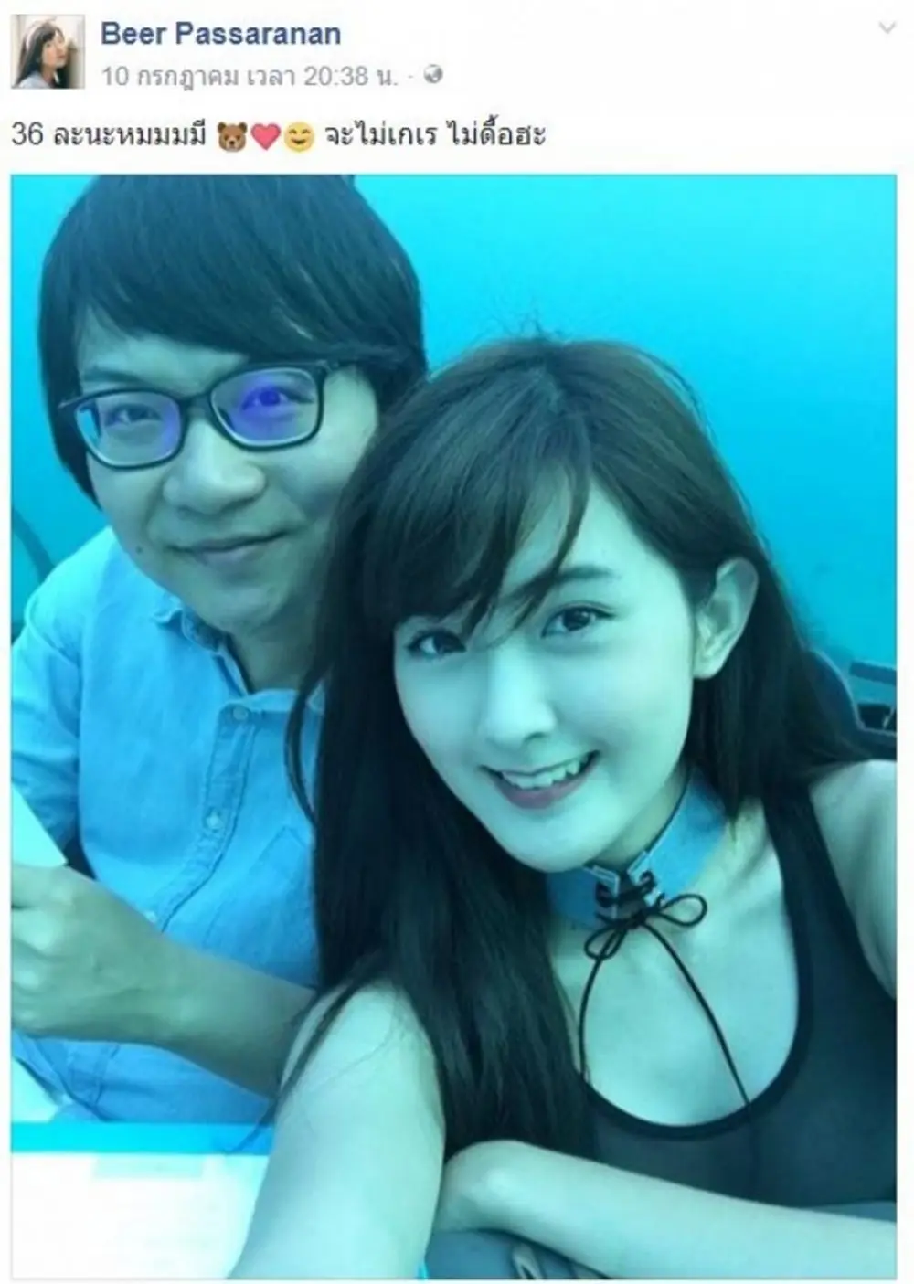 "เรื่องเก่าๆ ดราม่าอะไรตอนนี้ ขอร้องเลยว่าอย่าโยงกันไปเอง เข้าใจว่าความอยากรู้ ก็อยากรู้กันเนอะ เรื่องเก่าๆก็อยากให้มันจบแล้ว คนเราคบกันมา 3-4 ปีอะ เจอเรื่องทุกข์สุขกันมามากมาย เวลาเจอเรื่องแย่ๆ ก็ไม่ได้ออกมาป่าวประกาศให้ใครฟังเนอะ มันไม่จำเป็นเลย ที่ต้องให้ใครมารับรู้เรื่องของคนสองคน แต่สุดท้ายมันต้องแยกทาง เราเสียใจกันหมด *อย่าโยงให้มีผู้เสียหายเลยนะคะ การที่เบียไม่ได้มาแสดงออกว่าเสียใจ ไม่ได้หมายความว่าไม่เสียใจ แต่สไตล์การใช้ชีวิตของเบียร์ไม่ชอบทำอะไรให้คนมองว่าใครไม่ดี ไม่ชอบตั้งสเตตัสเพ้อๆ เพราะจะมีก็นานๆทีค่ะ แค่สไตล์การใช้ชีวิตคนเรามันต่างกัน*ถ้ามันเลยเถิด เบียร์คงต้องจัดการดำเนินคดีตามกฎหมายนะคะ อย่ากล่าวหากันเลยค่ะ*" ..ไงล่ะขาเผือกจอมแซะ ถ้าไม่หยุดเจอดีนะจ๊ะ