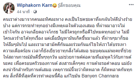แม่ยังคงน่ารักสำหรับกานต์เสมอ เหตุการณ์นี้จะว่าผิดพลาด ก็ผิดพลาดกันทุกคน สิ่งที่ดีที่สุดที่ควรทำตอนนี้คือ แก้ไขมัน Banyen Channara”