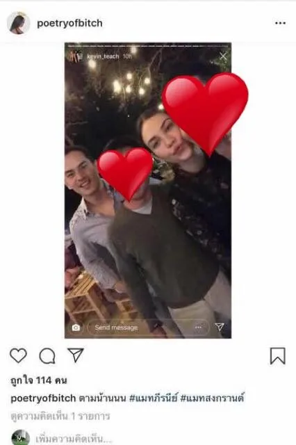 พราะว่าทั้งหวานทั้งสวีทมาก และรูปสุดสวีทล่าสุดของทั้งคู่ ก็คงจะหนีไม่พ้นรูปที่ สงกรานต์ได้พาสาว แมท ไปทัวร์อาณาจักร โบนันซ่า ที่เขาใหญ่ ซึ่งบอกเลยว่าราศีคุณนายจับจริงๆ ล่าสุดก็มีภาพที่ชาวเน็ตเผยช็อตเด็ดสุดสวีทของทั้งคู่ ทำเอาชาวเน็ตถึงกับแซวภาพนี้ว่า คนนี้แมทเอาอยู่จริงๆค่าา