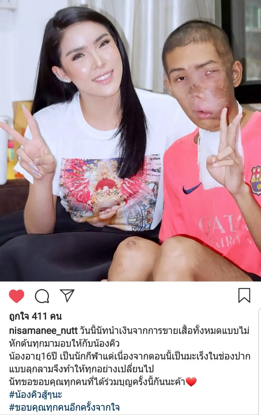 เป็นเน็ตไอดอลที่ใจบุญจริงๆสำหรับ นัท นิศามนี เพราะล่าสุดชีก็นำเสื้อที่นางขายได้นำมาช่วยเหลือ น้องคิว เด็กหนุ่มที่ป่วยเป็นมะเร็งช่องปาก บอกเลยว่าสาวนัทสวยและใจบุญจริงๆ