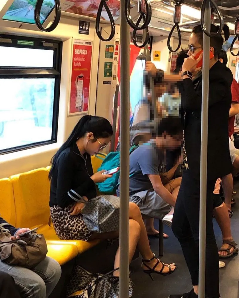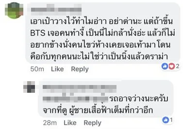 “เอาเป๋าวางไว้ทำไมอ่าา อย่าด่านะ แต่ถ้าขึ้น BTS เจอคนทำงี้ เป็นนี่ไม่กล้านั่งอ่ะ แล้วก็ไม่อยากข้างนั่งคนไขว่ห้างเคยเจอเท้ามาโดน คือกับทุกคนนะไม่ใช่ว่าเป็นนิ้งแล้วดราม่า”