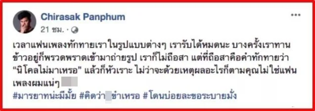 จากกรณีดราม่าที่ทำให้ นักร้องสายร็อคอย่าง แมว จิระศักดิ์ ต้องหัวเสีย เมื่อมีแฟนคลับมาขอถ่ายรูปและถามถึง นิโคล อดีตภรรยา ว่าไม่มาด้วยหรอ? ทำให้ แมว โมโหโพสต์ด่ากลางโซเชียลว่า #มารยาทน่ะมีมั้ย