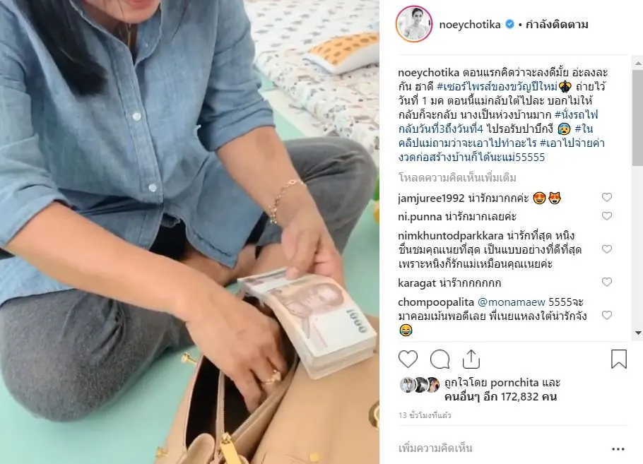 ชมภาพที่ เนย โชติกา ให้ของขวัญคุณแม่เป็นกระเป๋าแต่พอเปิดออกมาก็มีตังให้คุณแม่ได้ชื่นหัวใจบอกเลยว่าเธอน่ารักเป็นอย่างมากชอบดูแลคนอื่นอยู่ตลอดเวลาเลย