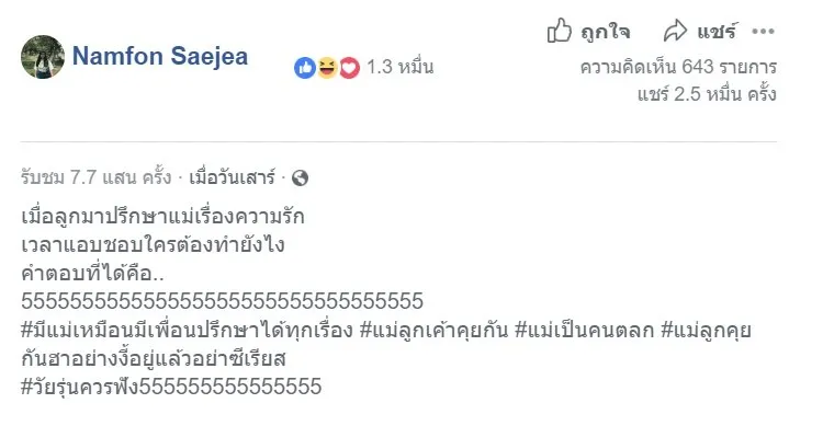 แม่มาเอง!! คนแห่ดู! เมื่อ”ลูกสาว” ปรึกษาแม่ “แอบชอบผู้ชายทำยังไงดี” คำตอบแม่ทำเอาฮากันทั้งโซเชียล
