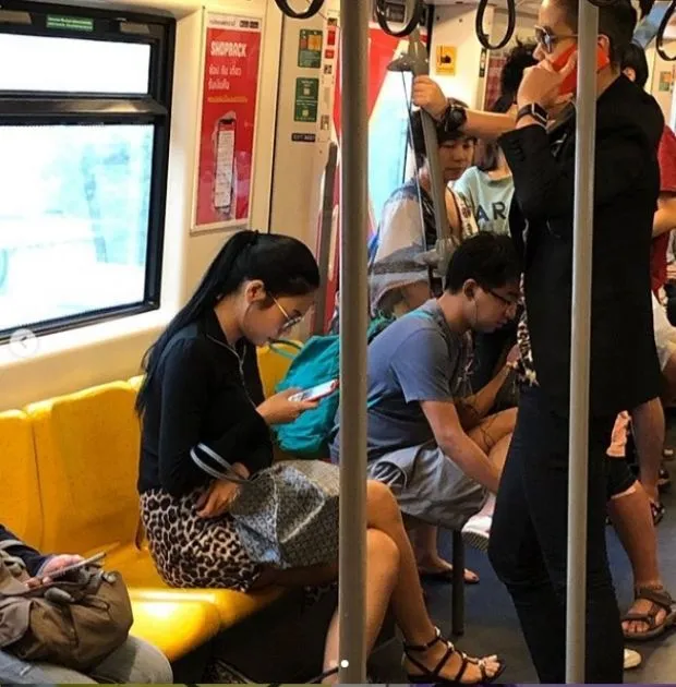 #ตกใจมาก ที่พี่เขาคุยกับเราหลายประโยค ซึ่งคนใน BTS นั้นก็มอง พี่เขาไปลงสถานีสยาม คุยกับเราตลอดทั้งทาง แล้วประโยคที่ก่อนจะลง พี่เขาพูดว่า #มีโอกาสไว้เจอกันใหม่นะค่ะ ซึ่งเราก็ดีใจมาก ถ้าใครได้อยู่ในขบวนBTS นั้น จะเห็นความน่ารัก พี่เขาเป็นกันเอง มาก อยากจะบอกทุกคนนะครับ และที่ว่างหลายที่มาก ซึ่งกระเป๋าที่พี่เขาวางนั้นไม่ได้เกะกะอะไรเลย เรายังมานั่งถ่ายรุปกับพี่เขาได้เลย ผมว่า เจตนา ของพี่เขาไม่ได้วางให้เผื่อไม่ให้ใครนั่งครับ เพราะในขบวนนั้นว่างหลายที่นั่งมาก เป็นเวลาช่วง 14.00 น. ครับ