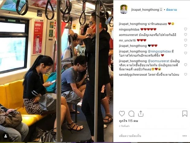 “#เลิกดราม่า นะครับ ผมเป็นเจ้าของรูปที่ถ่ายพี่นิ้งเองครับ พอดีวันนั้นผมจะไป สถานีพญาไท ผมดันขึ้น BTS ขบวนเดียวกับพี่นิ้ง นะครับ รูปที่ผมถ่ายเป็นรูปก่อนที่ผมจะไปนั่งข้างพี่นิ้ง ณ ตอนนั้นผมไม่รู้ว่าพี่นิ้งขึ้นมาจากสถานีไหน แต่ผมมาเจอพี่นิ้งที่สถานี สะพานตากสิน ตอนที่ประตูเปิดเข้าไป ผมเห็นที่ข้างๆพี่นิ้งว่างอยู่แล้ว1 ที่นั่ง แล้วผู้โดยสารก็ไม่เยอะ แล้วที่นั่งฝั่งตรงข้ามก็ว่างหลายที่นั่ง ส่วนผู้โดยสารที่ยืนตรงประตูนั้นเขาก็เตรียมลงสถานีถัดไป #แล้วรูปที่ผมถ่าย ผมถ่ายรุปพี่นิ้งเสร็จผมก็เข้าไปนั่งตรงพี่นิ้ง แล้วผมถามว่าใช่พี่นิ้งหรือป่าวครับ พี่นิ้งก็หันมาถอดแว่น แล้วพูดว่าใช่ค่ะ happy New Year ซึ่งเราตกใจมาก -หื้มพี่เขาคุยกับเราด้วย- แล้วซึ่งไม่หยุดแค่นั้น พี่เขาถามเราว่า