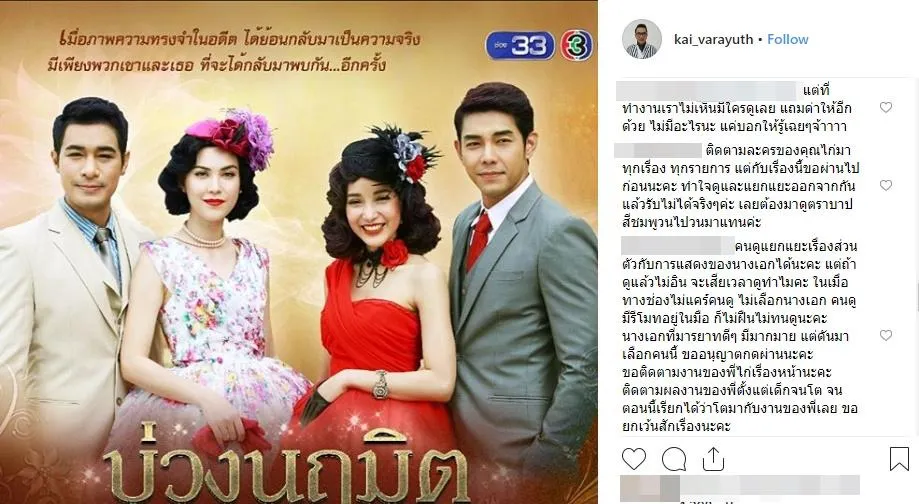 ลามไปจนถึงผลงานละครเรื่องล่าสุดอย่าง บ่วงนฤมิต ที่เพิ่งออกอากาศ ก็ดูจะได้รับผลกระทบจากนางเอกสาวด้วย โดยล่าสุดในอินสตาแกรมของผู้จัด ไก่ วรายุฑ ที่ลงรูปโปรโมทละครเรื่องนี้ ก็มีชาวเน็ตเข้าไปแสดงความเห็น โดยมีเนื้อหาใจความว่า “ไม่ขอติดตามละครเรื่องนี้เพราะนางเอกของเรื่อง” เป็นจำนวนมาก โดยทางผู้จัดไก่ ได้ตอบกลับความเห็นเพียงแค่ว่า “ขอบคุณครับ”
