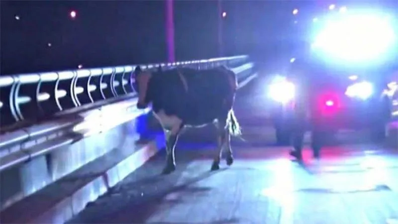 เหตุการณ์ต่อไปนี้เกิดขึ้นเมื่อปลายปี 2561 ช่วงกลางดึก ในรัฐนิวเจอร์ซี ประเทศสหรัฐอเมริกา "แม่วัวท้องแก่" กระโดดลงมาจากรถบรรทุกสูง 8 ชั้น ที่กำลังขับไปโรงฆ่าสัตว์ มันพยายามเดินบนถนนที่มีรถวิ่งด้วยความเร็วสูง ในเวลาต่อมา เจ้าหน้าที่ตำรวจได้รับแจ้งเหตุดังกล่าว จึงออกตามหาแม่วัวท้องแก่ตัวนี้ และใช้เวลาราวๆ ชั่วโมงกว่าจึงจับมันสำเร็จ