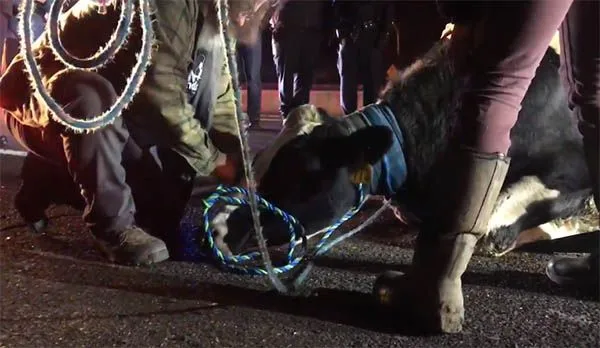 "แม่วัวท้องแก่" กระโดดหนีรถพาไปโรงฆ่าสัตว์ และการตัดสินใจของมันทำชีวิตเปลี่ยนทันที (คลิป)