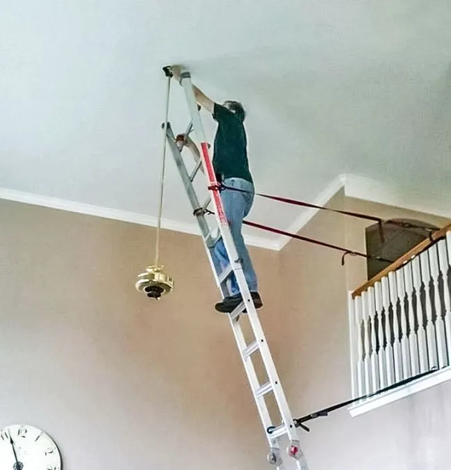 13 เมื่อบันไดสูงไม่พอไม่ต้องกลัวบันไดหล่น ถ้าเชือกไม่หลุดนะ