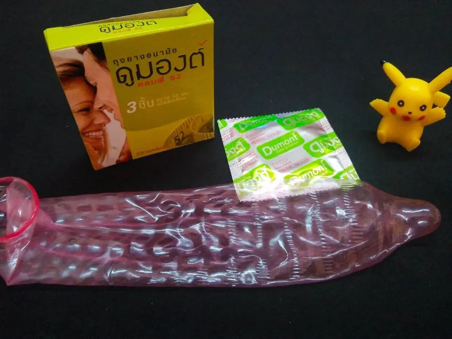 #durexเซนเซชั่น 52mm ผิวไม่เรียบ มีเนินๆ มีปุ่มๆ ส่วนตัวไม่ค่อยสัมผัสถึงปุ่