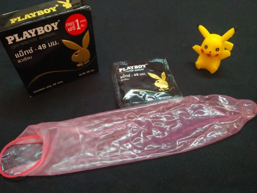 #Playboyเฟเธอร์ไลท์ 52mm ผิวเรียบ ตัวถุงไม่มีกลิ่น เวลาfeat.รู้สึกว่าไม่ค่อยล