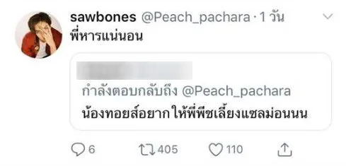 งานนี้เมื่อหนุ่มพีช เห็นก็ได้ตอบกลับไปว่า รวยแต่เขื่อ และพอชาวเน็ตบอกน้องทอยอยากให้พี่พีชเลี้ยงแซลมอน หนุ่มพีชก็ตอบแบบชัดๆเลยว่า “พี่หารแน่นอน” 55555 ทำเอาชาวเน็ตขำลั่นและบอกเลยว่าสงสารน้องทอยที่โดนดับฝันจริงๆ
