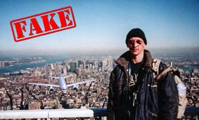 ภาพดังกล่าวปรากฏขึ้นหลังจากเหตุการณ์ 9/11 เพียงไม่กี่สัปดาห์ เป็นภาพของนักท่องเที่ยวกับเครื่องบินที่กำลังพุ่งชนตึกเวิลด์เทรดเซ็นเตอร์ ซึ่งมีหลายจุดที่ดูไม่สมจริง ซึ่งเกิดคำถามขึ้นมากมาย เช่นเขาไม่ได้ยินเสียงของเครื่องบินหรือ? แล้วช่างภาพรอดชีวิตมาได้ยังไง? และล่าสุดความจริงก็ปรากฏแล้วว่าเป็นภาพปลอม โดยเว็บไซต์ wired ได้ออกมาบอกว่าภาพนี้ถูกถ่ายเมื่อประมาณ 4 ปีก่อนเกิดเหตุ 9/11
