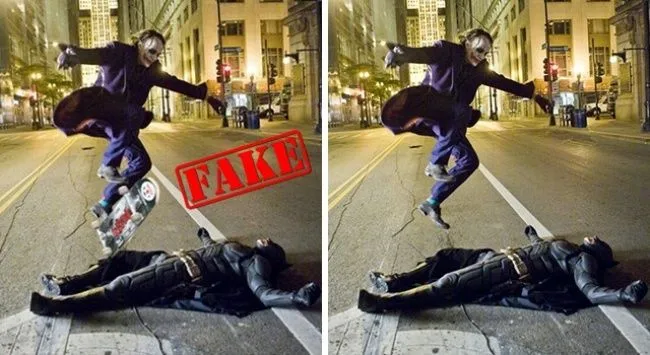ภาพนี้แพร่ไปทั่วในโลกออนไลน์ มีคำอธิบายประกอบว่า Heath Ledger กำลังสนุกสนานกับ The Dark Knight แต่ความเป็นจริง ไม่มีสเก็ตบอร์ดอยู่จริงๆ