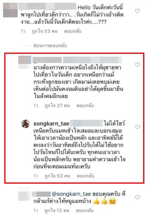 ชาวเน็ต : นางต้องการความเหนือไงถึงไห้ผุชายพาไปเที่ยวในวันเด็ก อยากเหนือกว่าแม้กระทั่งลูกของเขา เกิดมาม่เคยพบม่เคยเห็นต่อไปมันคงจมดินอย่าได้ผุดขึ้นมายืนในสังคมอีกเลย // สงกรานต์ : ไม่ได้โชว์เหนือครับแมทเข้าใจเสมอและบอกเสมอให้เอาเวลาน้องเป็นหลัก และอาทิตย์นี้ได้ตกลงว่าวันอาทิตย์ถึงไปรับได้ไม่ใช้อยากไปวันไหนก็ไปได้นะครับ ทุกคนเอาเวลาน้องเป็นหลักครับ พยายามทำความเข้าใจก่อนที่จะคอมเมนท์นะครับ