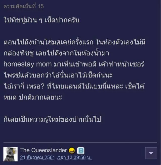 ทิชชู่ม้วนสำหรับผรั่งเค้าไว้เช็ดก้นเท่านั้น คนไทยเช็ดปากแบบเนียนๆ