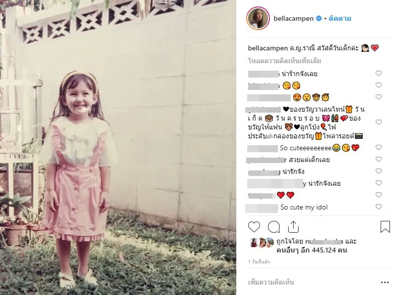 เมื่อวันเด็กที่ผ่านมา ชาวโซเชี่ยลต่างโพสต์ภาพในวัยเด็กออกมาให้ชมกันมากมายไปหมด ไม่เว้นแม้กระทั่งเหล่าดารา ก็ออกมาโพสต์ภาพด้วยเหมือนกัน ก็ทำให้เหล่าบรรดาแฟนคลับเข้าไปเม้นท์แซวเล่นกัน อย่างเช่นนางเอก เบลล่า ราณี