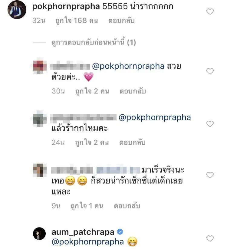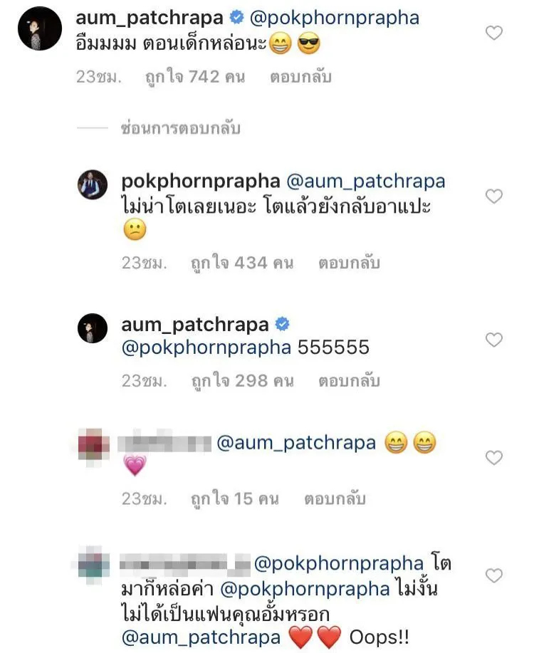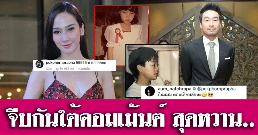หลังจากที่มีภาพหวานออกมาแบบถี่ๆ ให้หลายคนลุ้นตาม เมื่อวันเด็กที่ผ่านมานี้ อั้ม พัชราภา ลงรูปตอนสมัยยังเด็กแบบรัวๆ ฝั่งหนุ่มคนสนิทอย่าง ไฮโซพก ประธานวงศ์ ก็รีบเข้ามาคอมเม้นท์เลยว่า “55555 น่ารากกกกก” ซึ่งพอไปดูที่ทางหนุ่มพกเองก็ไม่น้อยหน้าเจ้าค่ามีลงรูปตัวเองตอนเด็กโชว์ความน่ารักเหมือนกันจนสาวอั้มก็ไม่พลาดเข้ามาคอมเม้นท์กลับให้ว่า “pokphornprapha อืมมมม ตอนเด็กหล่อนะ” ทำเอาเหล่าแฟนคลับนี่ฟินตามไปด้วยเป็นแถวๆ แหมมๆ มีความหยอกแซวกันออกสื่อแบบนี้ก็ไม่รู้เมื่อไหร่เจ้าตัวเขาจะยอมเอ่ยปากฟันธงว่ากำลังคบกันอยู่อ่ะเปล่า