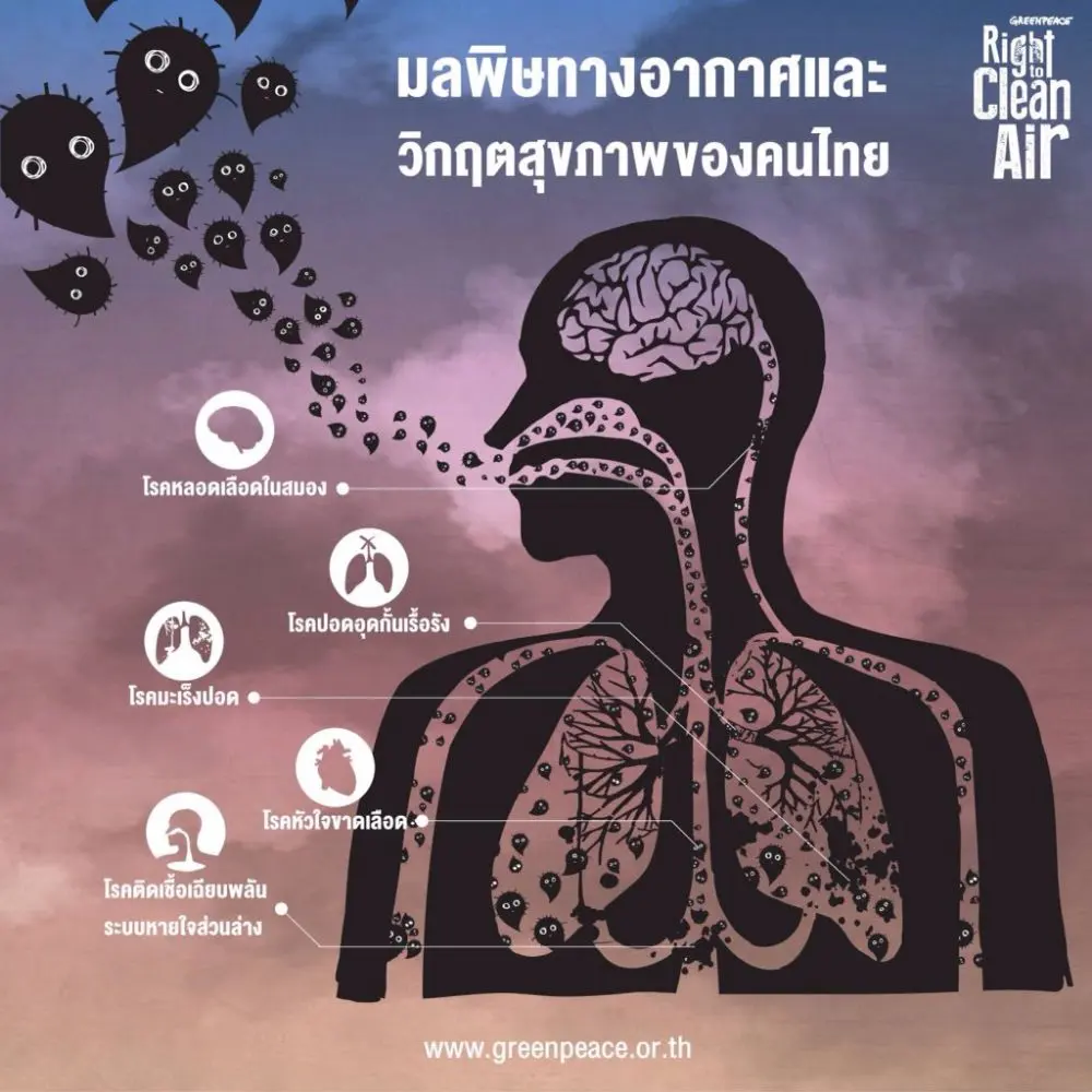 PM2.5 ทำอะไรเราได้บ้าง? องค์การอนามัยโลกจัดให้ PM2.5 จัดเป็นสารก่อมะเร็งในกลุ่มที่ 1 มาตั้งแต่ปี 2556 สามารถหลุดเข้าไปในกระแสเลือดก่อให้เกิดโรคมะเร็งปอด โรคหลอดเลือดในสมอง โรคปอดอุดกั้นเรื้อรัง โรคหัวใจขาดเลือด และโรคติดเชื้อเฉียบพลันระบบหายใจส่วนล่าง pic.twitter.com/etIdjncEeB