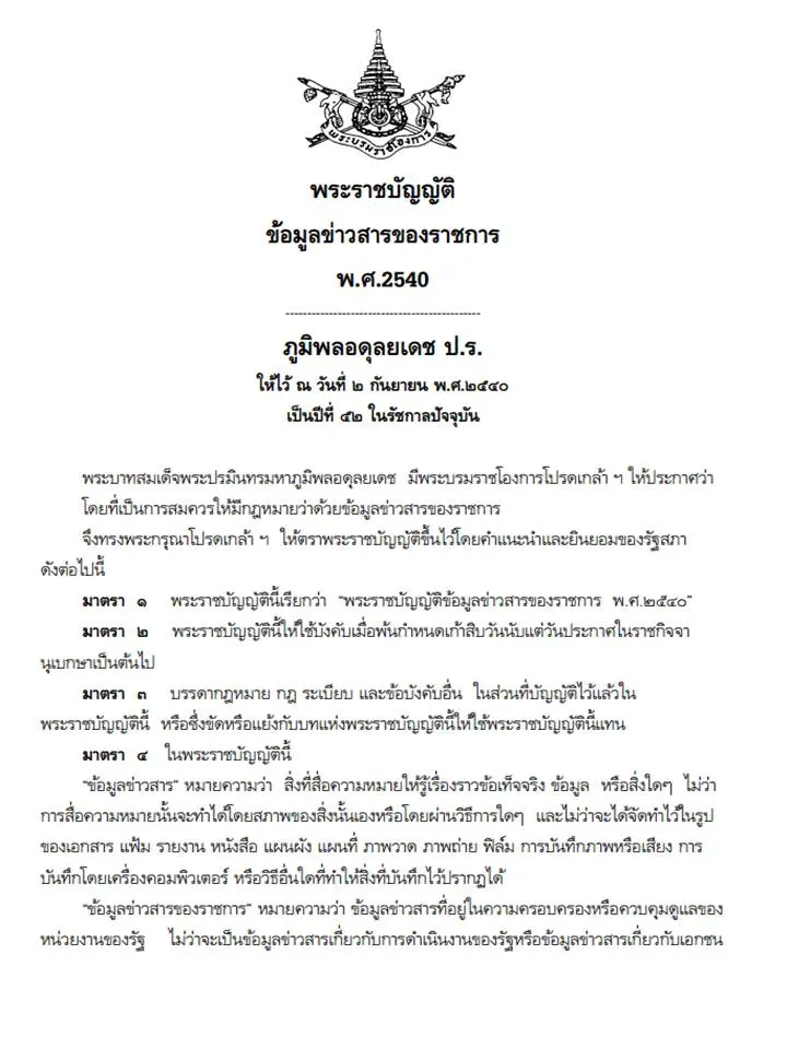 โหลด พ.ร.บ.ข้อมูลข่าวสารทางราชการ พ.ศ.2540