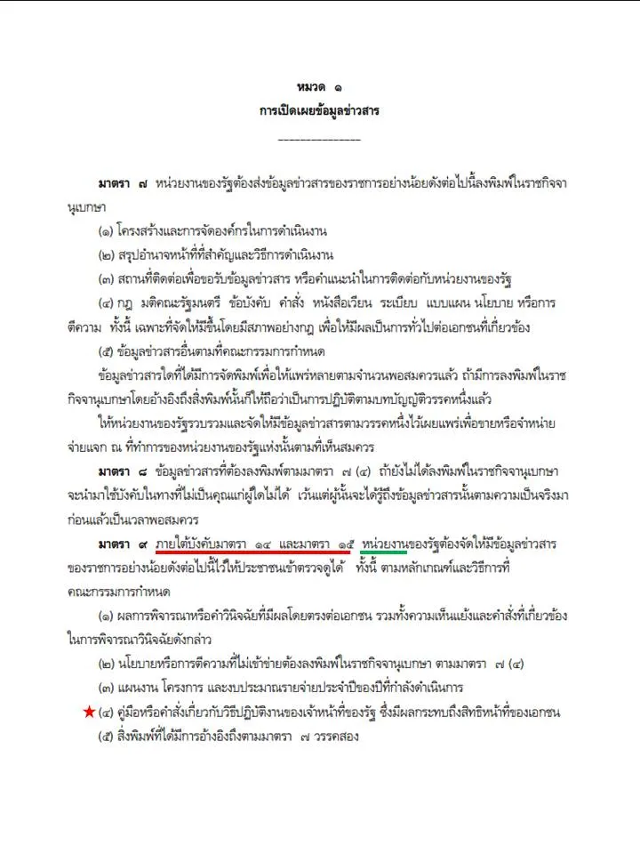 "ภายใต้บังคับ มาตรา 14 และ มาตรา 15 หน่วยงานของรัฐต้องจัดให้มีข้อมูลข่าวสารของทางราชการให้ประชาชนตรวจดูได้.....ฯลฯ"