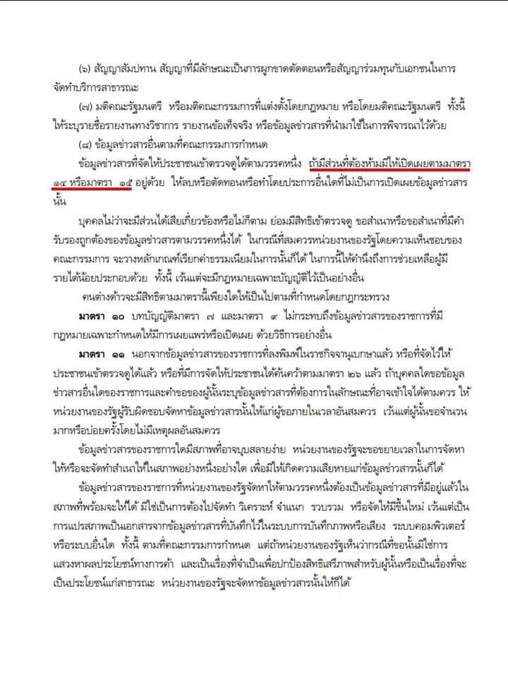"ข้อมูลข่าวสารลักษณะอย่างหนึ่งอย่างใดต่อไปนี้ หน่วยงานของรัฐหรือเจ้าหน้าที่ของรัฐอาจมีคำสั่งมิให้เปิดเผยก็ได้ ....ฯลฯ"