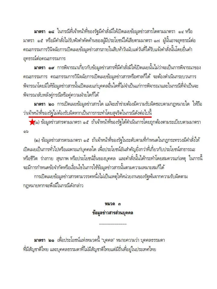 มาตรา 20...เจ้าหน้าที่รัฐ ไม่ต้องรับผิด หากทำการโดยสุจริต และถูกต้องตาม มาตรา 15 และ 16 ฯลฯ
