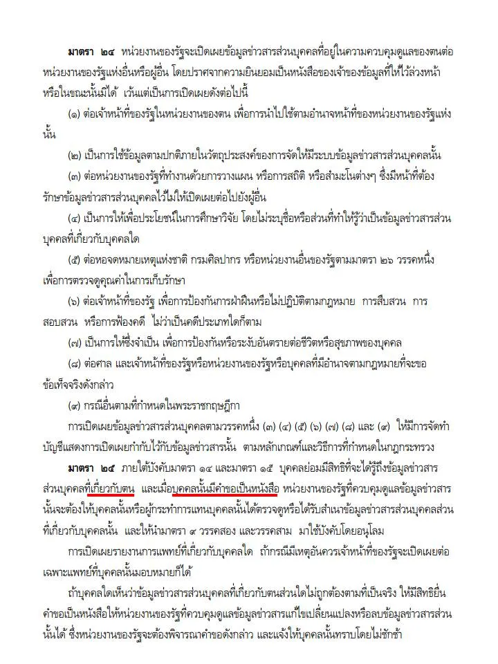 มาตรา 25 ... ภายใต้บังคับมาตรา 14 และ 15 บุคคลย่อมมีสิทธิที่จะได้รับข้อมูลข่าวสารที่เกี่ยวกับตน ( ถ้าไม่เกี่ยวกับตนโดยตรง ไม่มีสิทธิ) และมีคำขอเป็นหนังสือ ฯลฯ