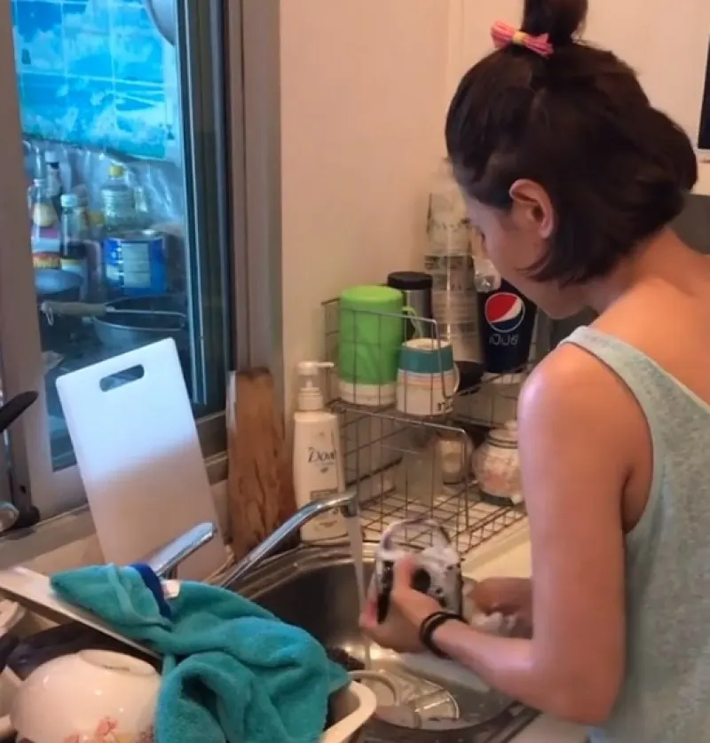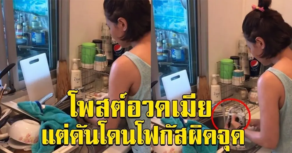 ไม่เว้นแม้แต่ตอนภรรยาสาวยืนล้างจาน พ่อหนุ่มก็ยังขอตามยืนให้กำลังใจไม่ห่าง พร้อมมีอัดคลิปความน่ารัก ความเป็นแม่ศรีเรือนของภรรยา อวดลงโซเชียลมีเดีย พร้อมขึ้นแคปชั่นว่า