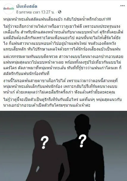 จากเพจ บันเทิงสลัด ได้โพสต์แฉ เกี่ยวกับดราม่า คู่รักดาราเจอรักสามเส้า โดยระบุชัดเจนไว้ว่า "