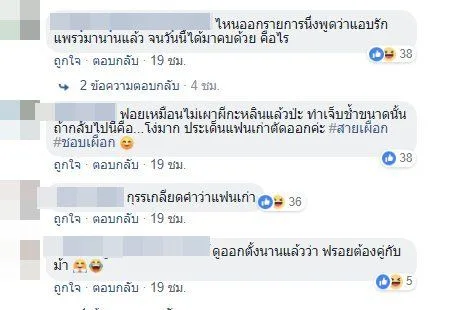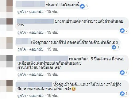 ต่อมาด้านชาวเน็ตเข้ามาระบุแล้วจ้า ว่าดาราชายหน้าทะเล้น น่าจะเป็น "ฟรอยด์" และแฟนสาวเสียงแบ๊ว น่าจะเป็น "แพรว คณิตกุล" ส่วนแฟนเก่าของฝ่ายชายที่จะกลับไปคบก็น่าจะเป็น นางแบบหน้าแนว "หลิน" งานนี้ก็ต้องลุ้นว่าใช่หรือไม่ จริงหรือจ้อจี้กันแน่
